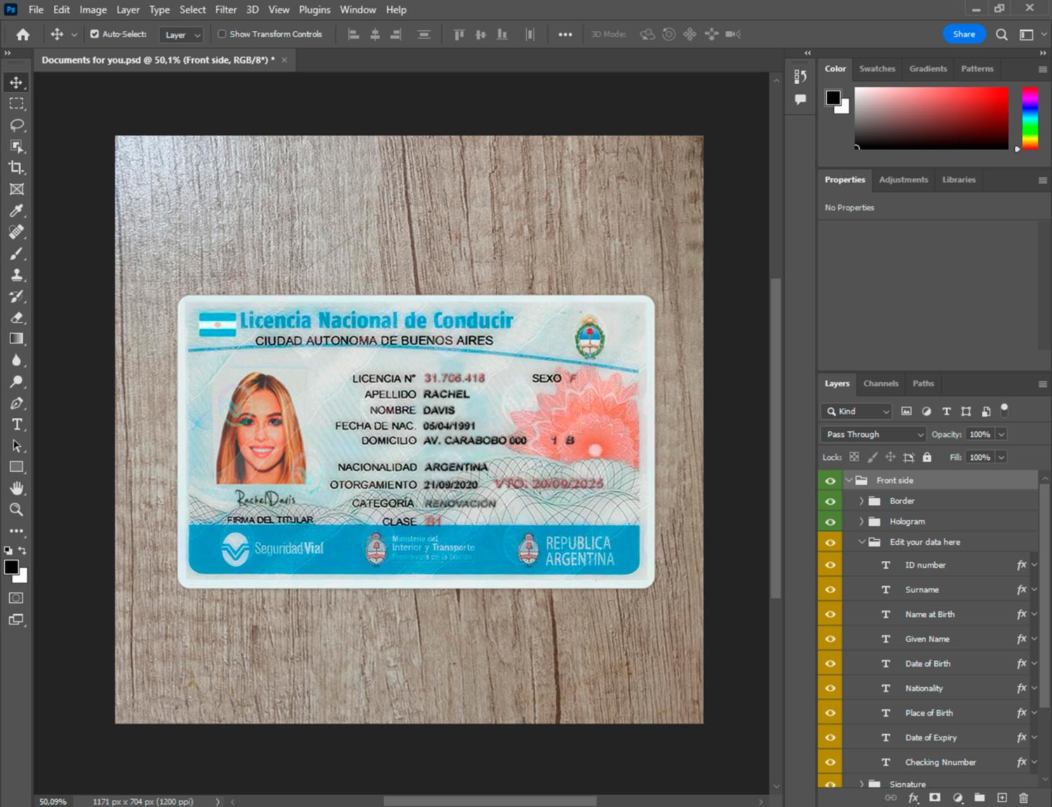 -Argentina Driver License template front.psd + back.psd