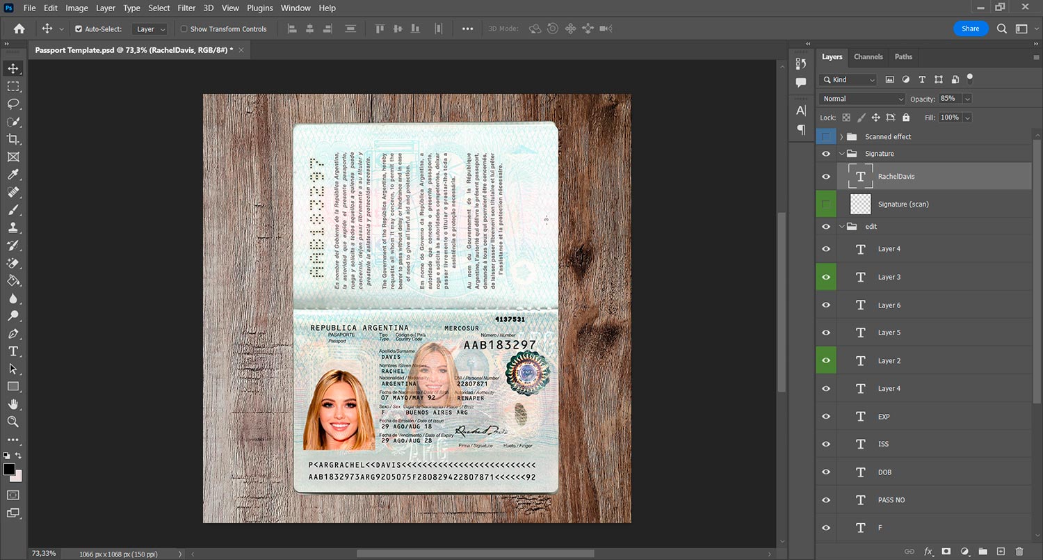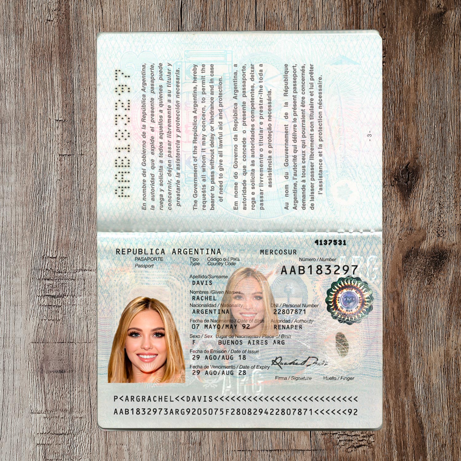 fake Argentina Passport template