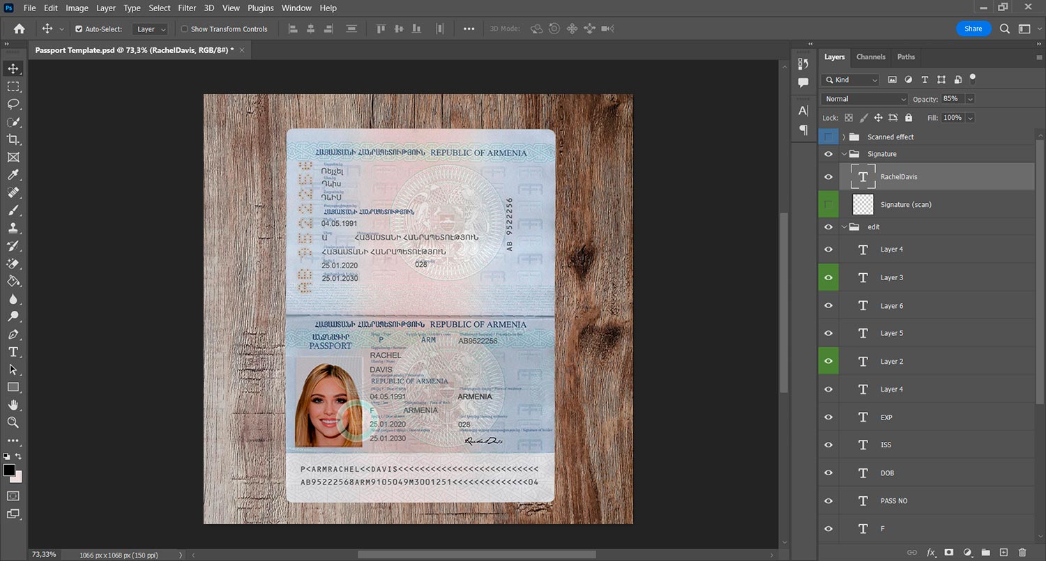 Armenia Passport Template generator