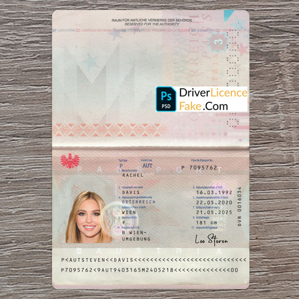 fake AUSTRIA Passport template