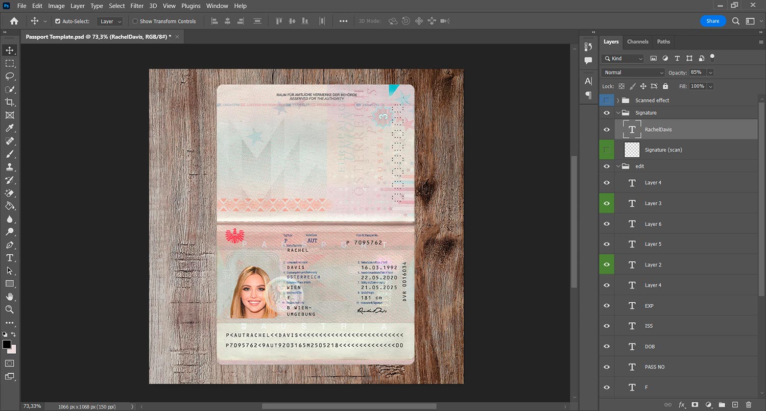 AUSTRIA Passport template generator