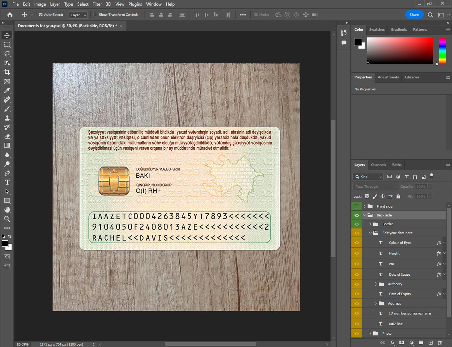 -Azerbaijan id card generator template front.psd + back.psd