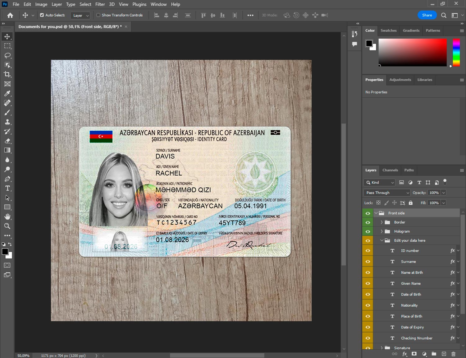 Azerbaijan id card generator template
