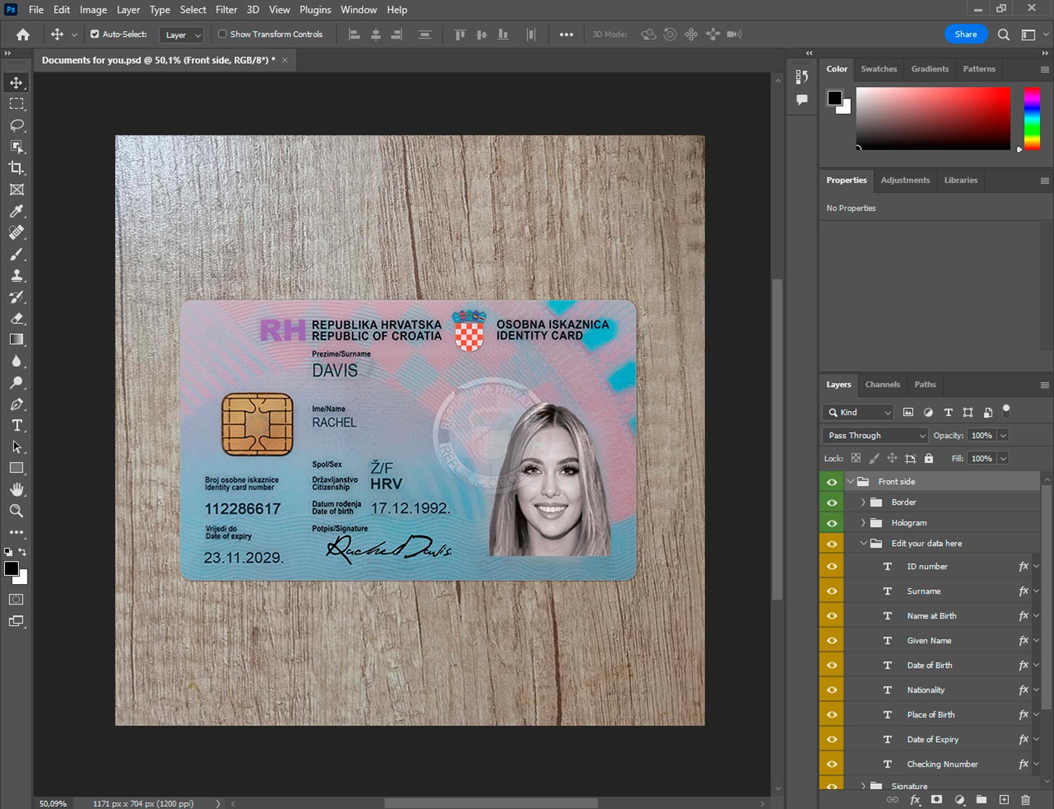 -Croatia id card generator template front.psd + back.psd