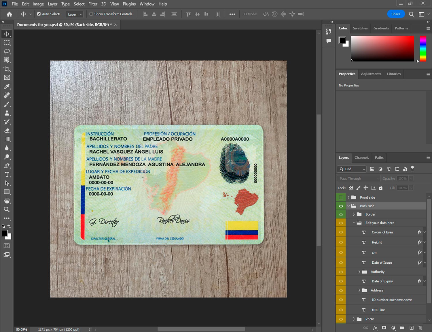 -Ecuador ID template front.psd + back.psd