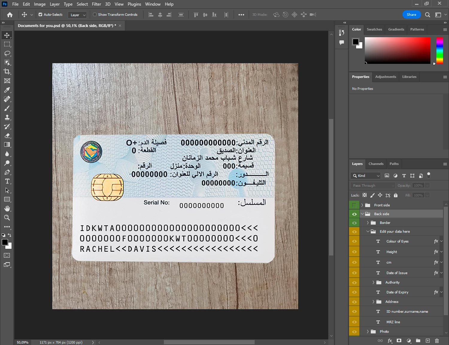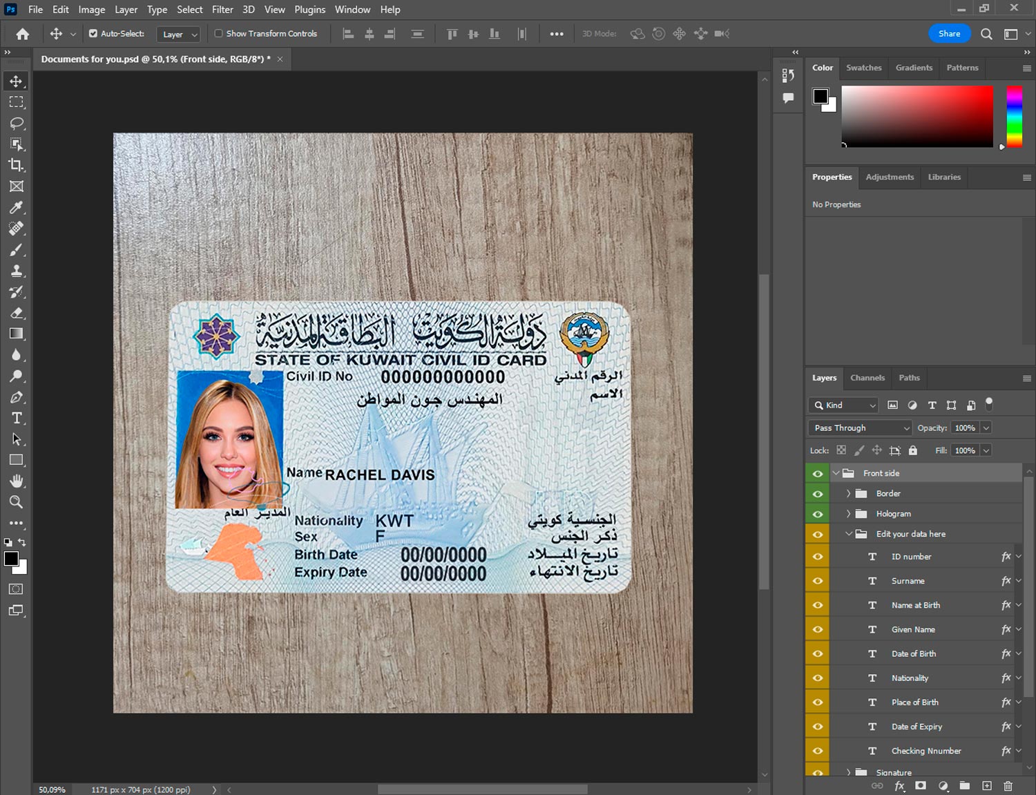 -Kuwait ID template front.psd + back.psd
