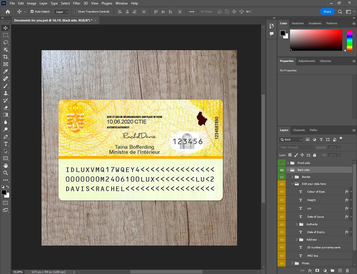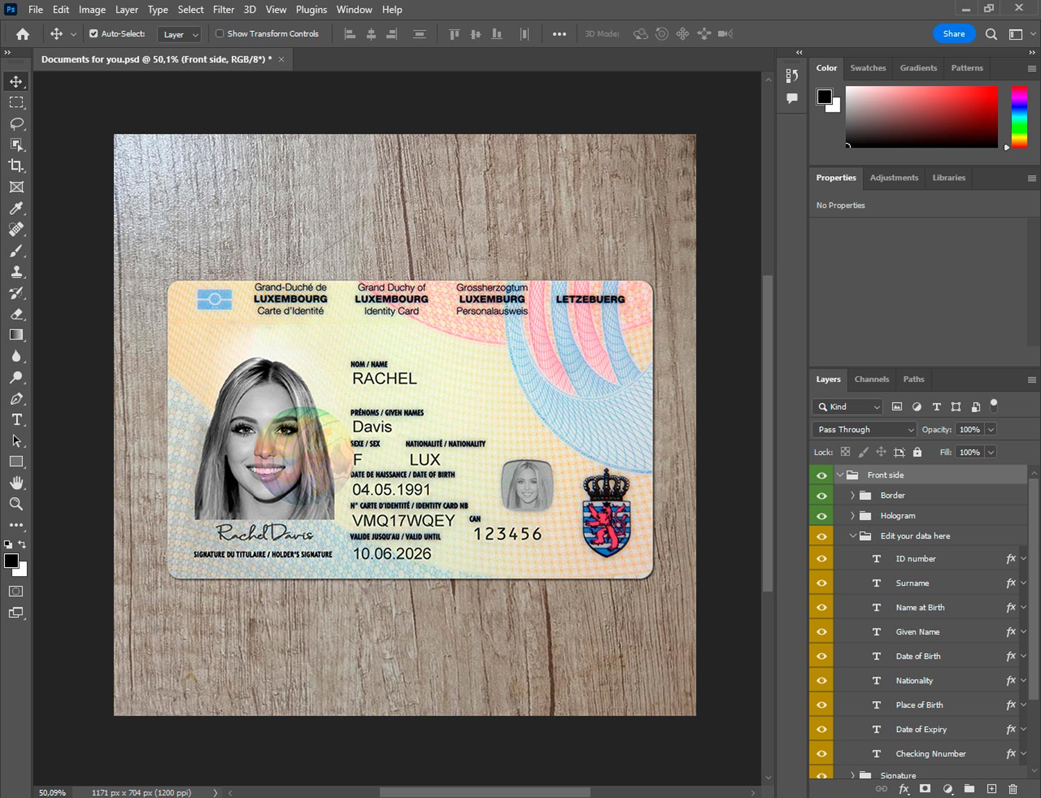 -Luxembourg id card generator template front.psd + back.psd