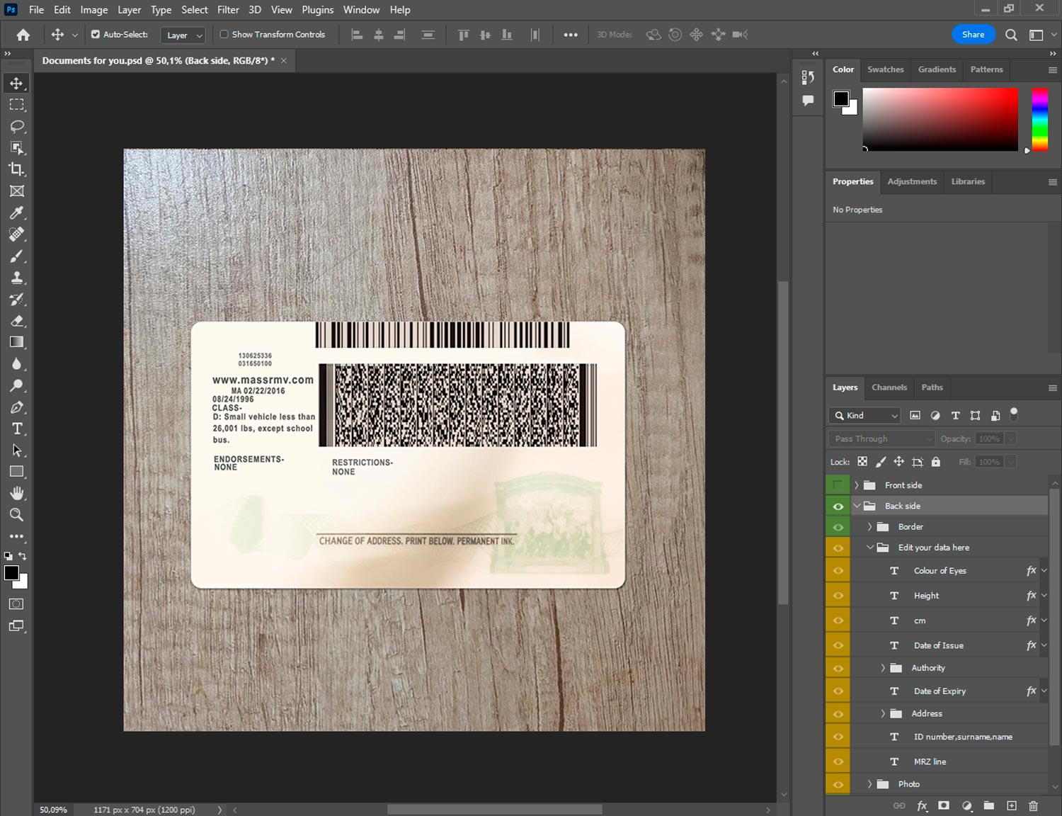 -Massachusetts Driver license template front.psd + back.psd