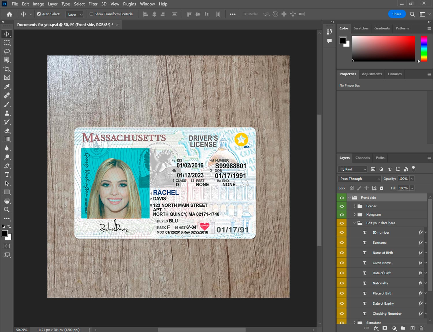 Massachusetts Driver license template