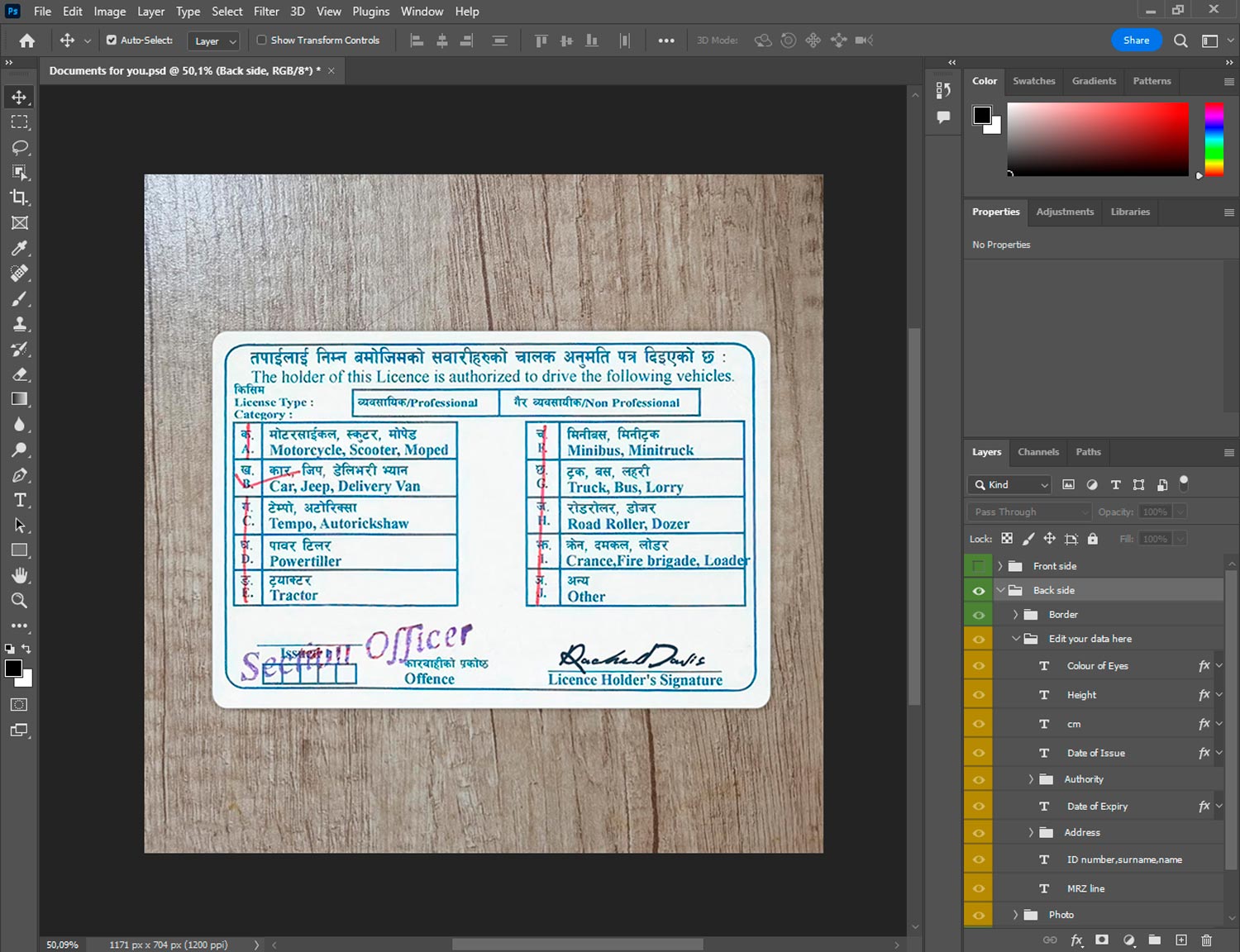 -Nepal Driver License template front.psd + back.psd