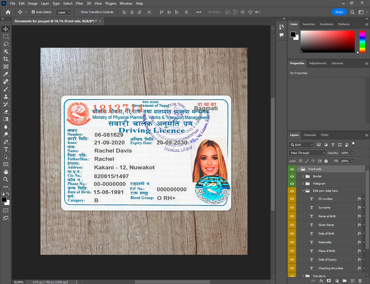 Nepal Drivers License template