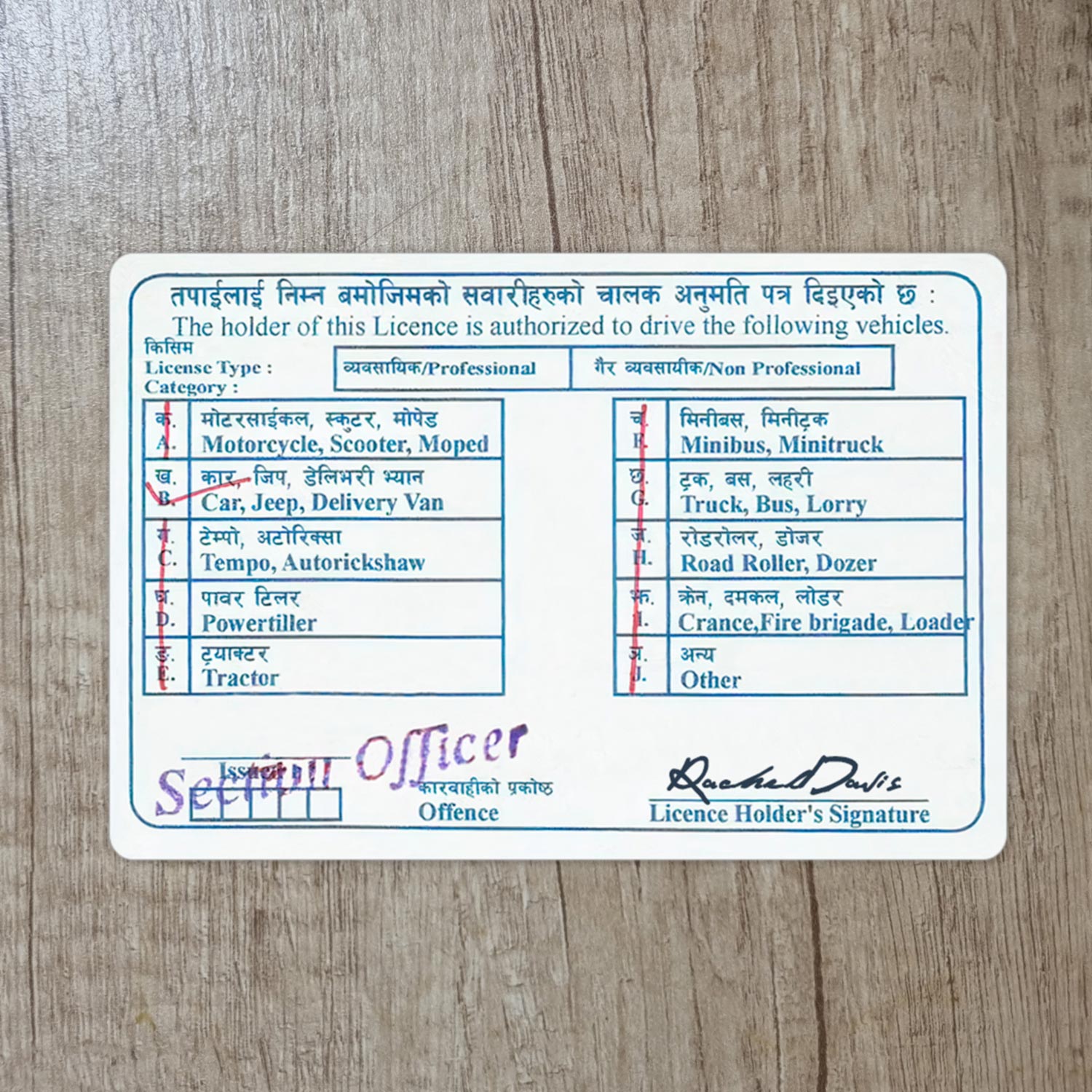 Nepal Driver License template