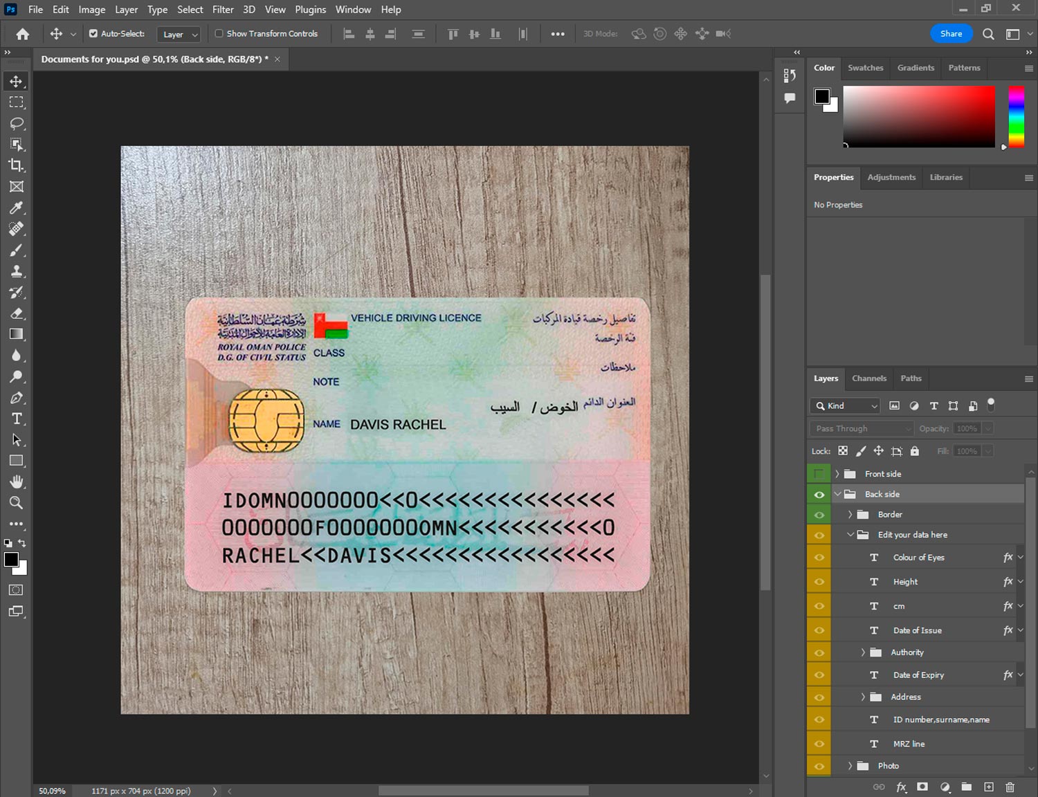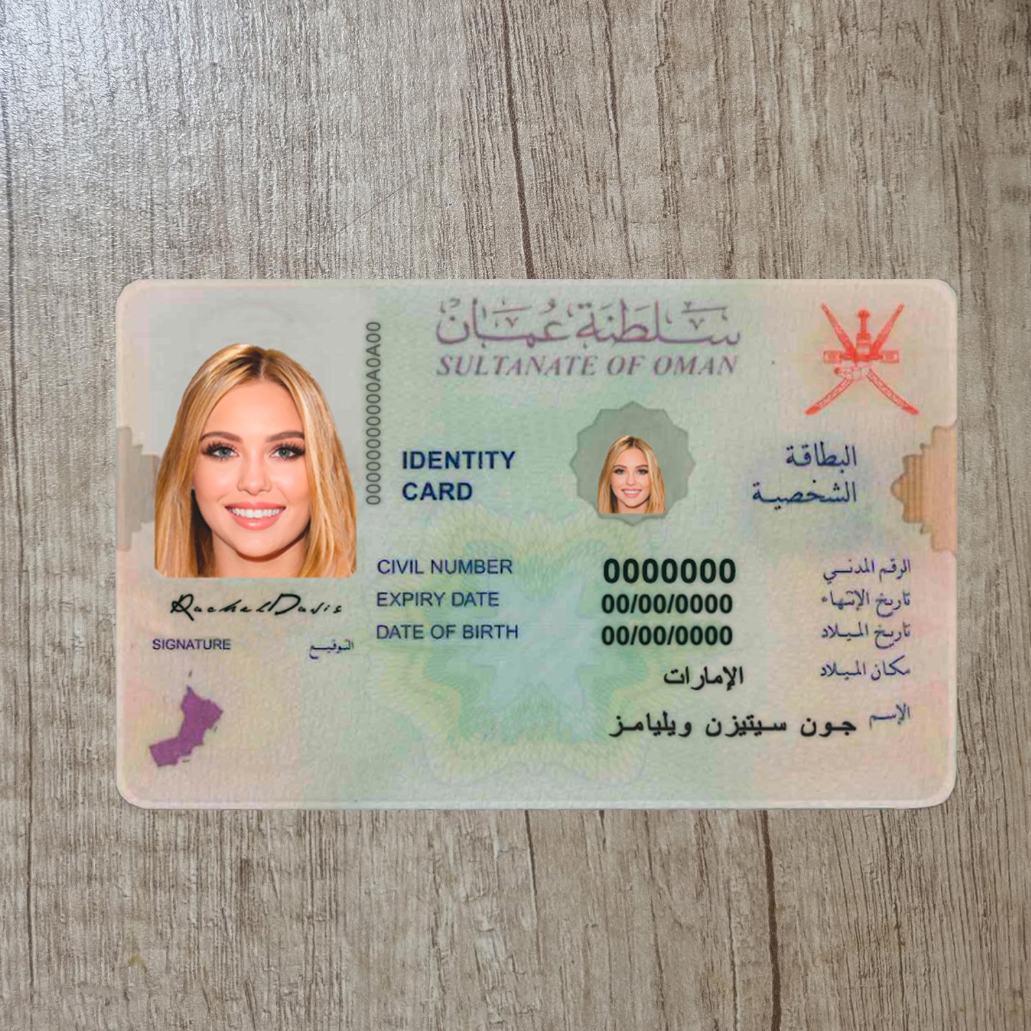 Oman fake id template