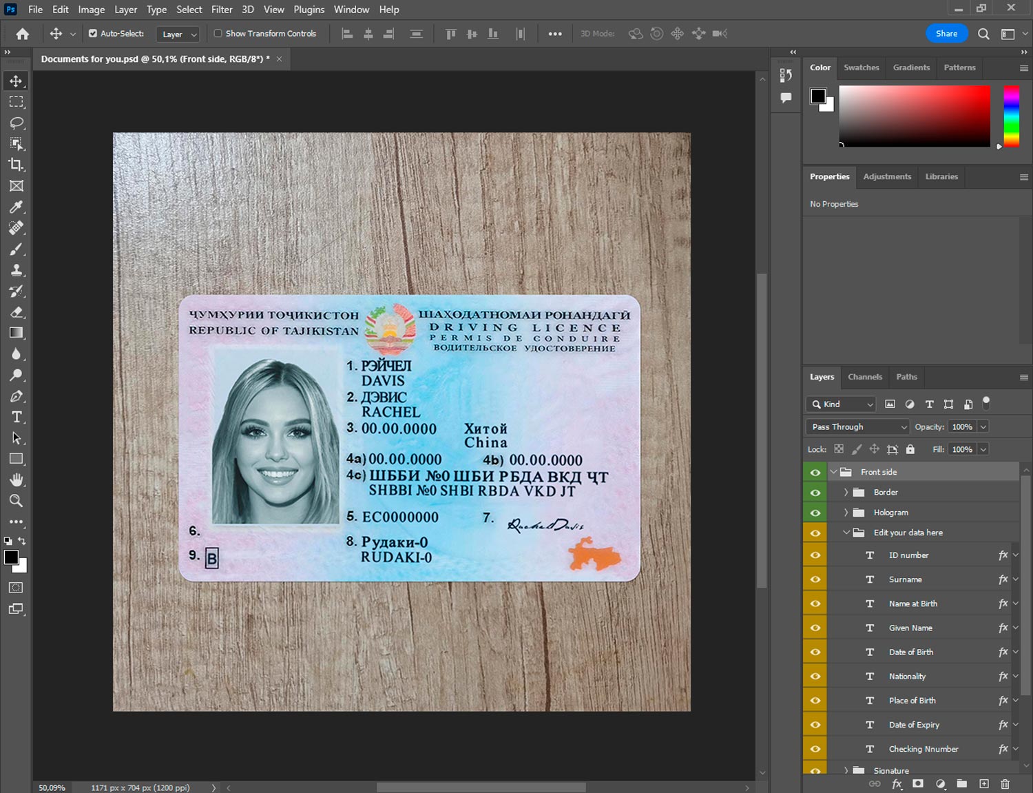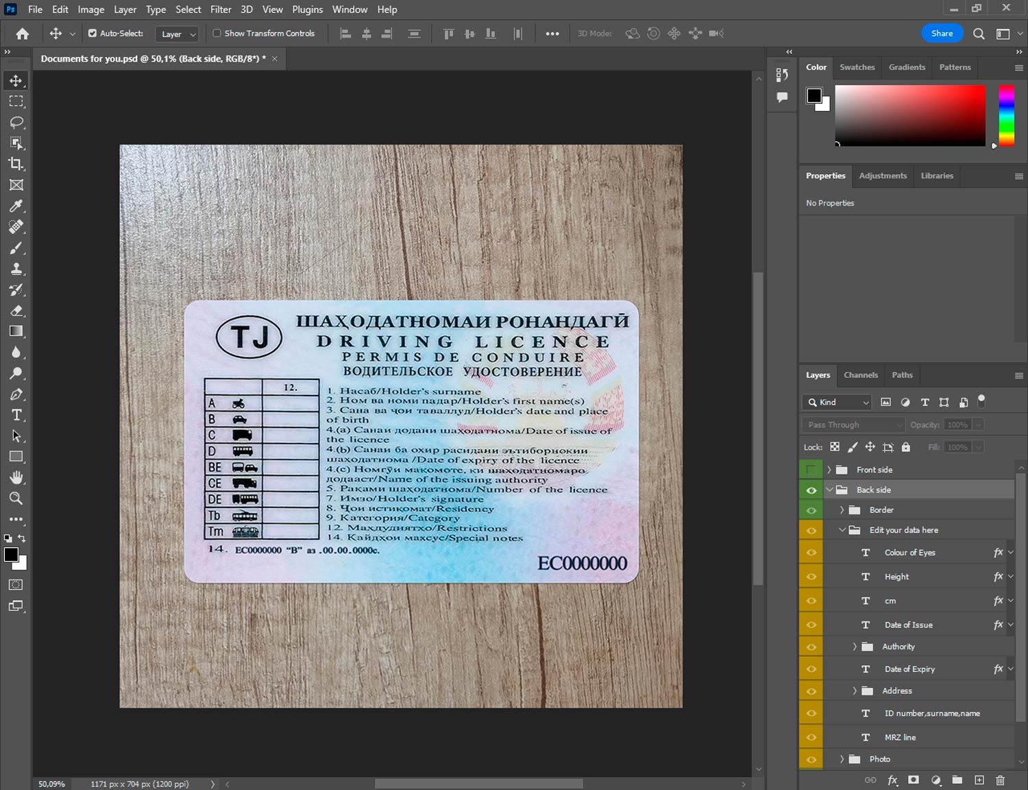 -Tajikistan drivers licence generator template front.psd + back.psd