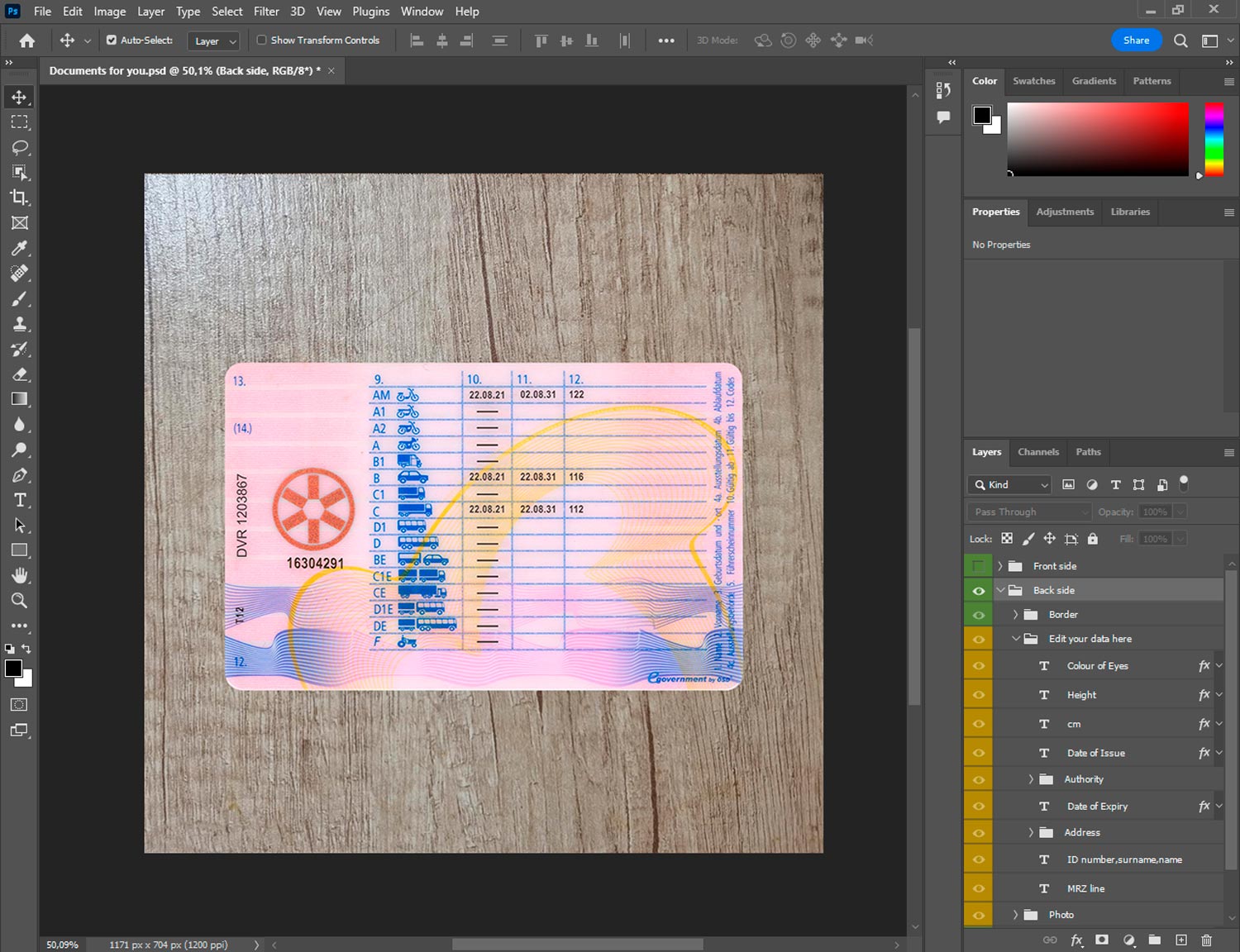 Austria driver license generator template