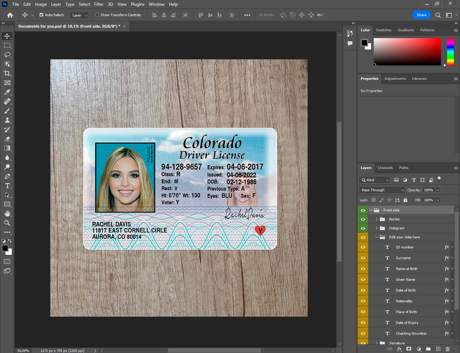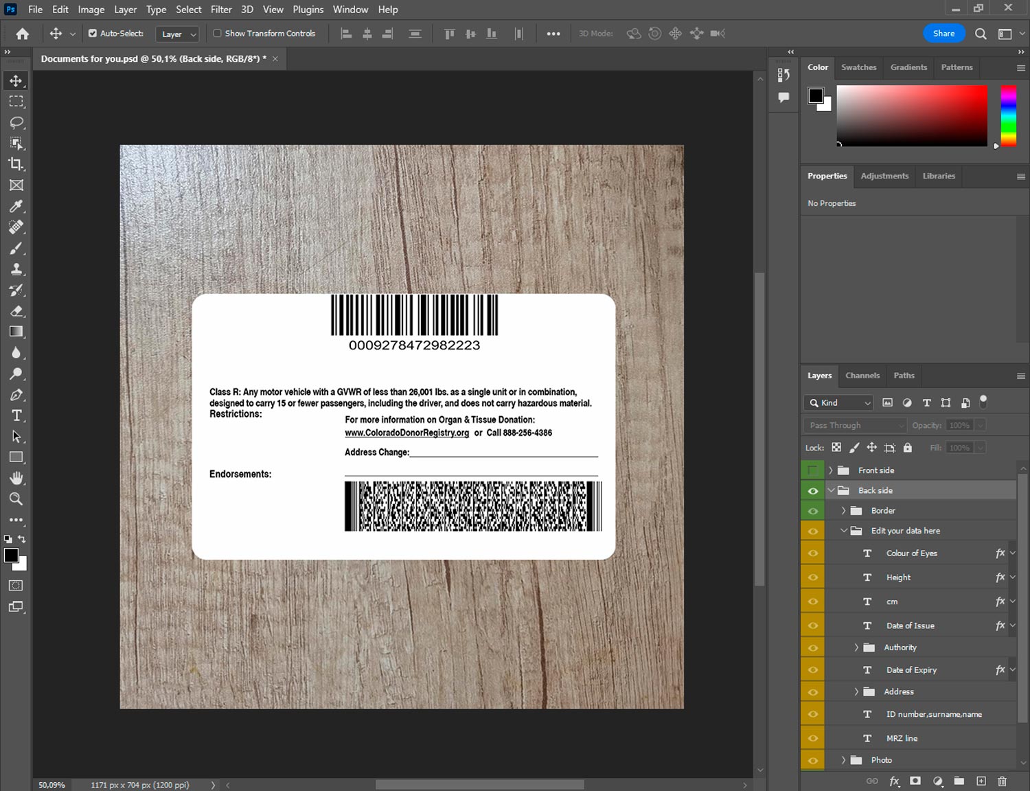 -Blank colorado drivers license template Old V2 front.psd + back.psd