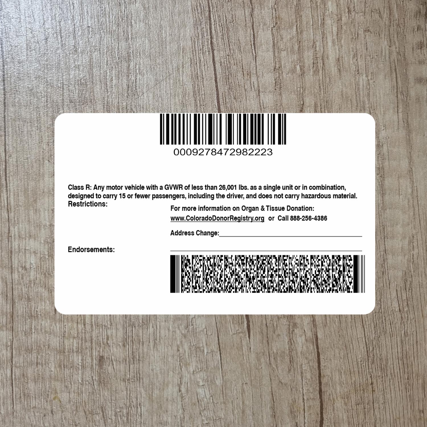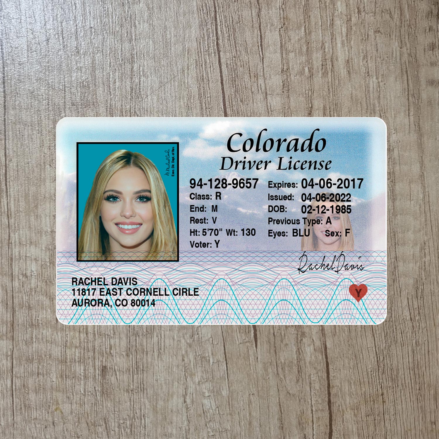 For example, the Blank Colorado drivers license template Old V2 can be used for reading purposes, but it works fine for online verification of any sites for example: