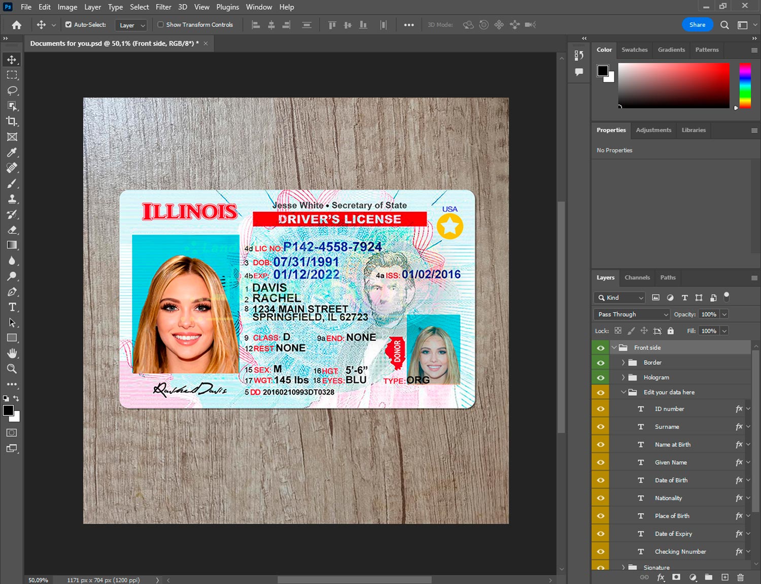 Illinois drivers license template