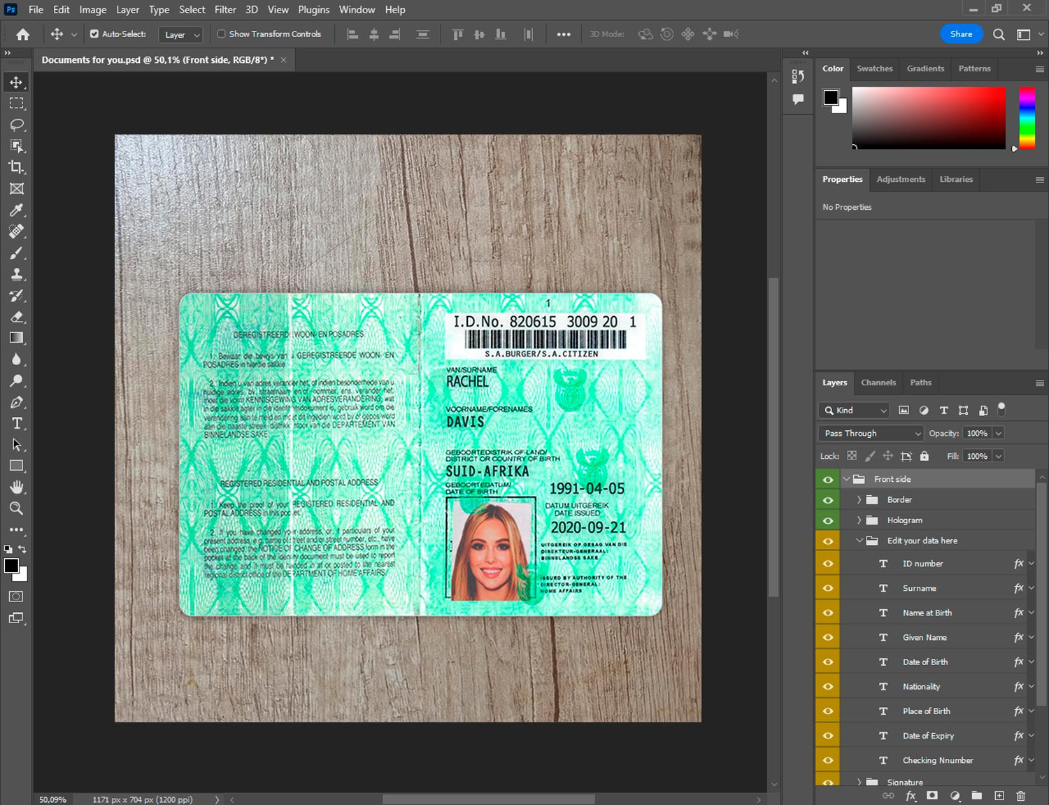 -South Africa ID template front.psd + back.psd