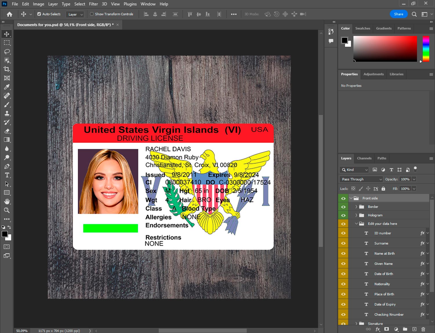 -Virgin Islands (VI) USA Driver Licence Template front.psd + back.psd