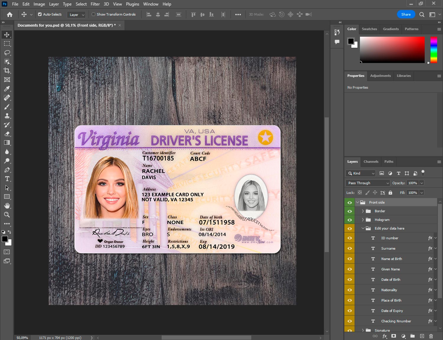 For example, the Virginia Drivers license template can be used for reading purposes, but it works fine for online verification of any sites for example:
