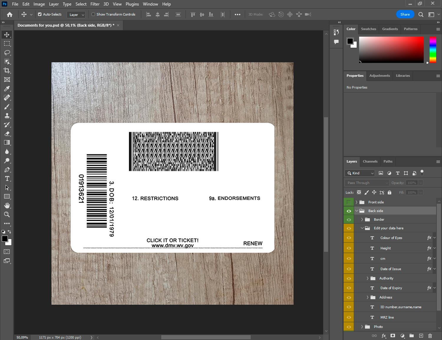 -West Virginia Drivers license template front.psd + back.psd