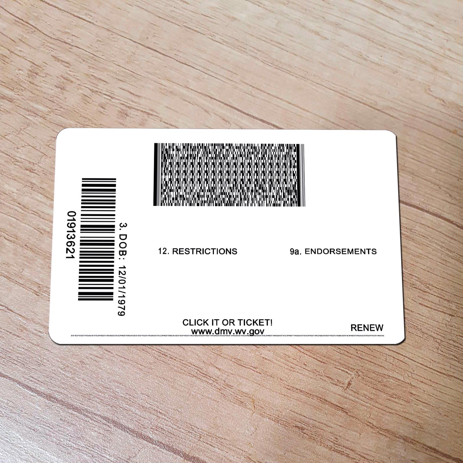 blank West Virginia drivers license template